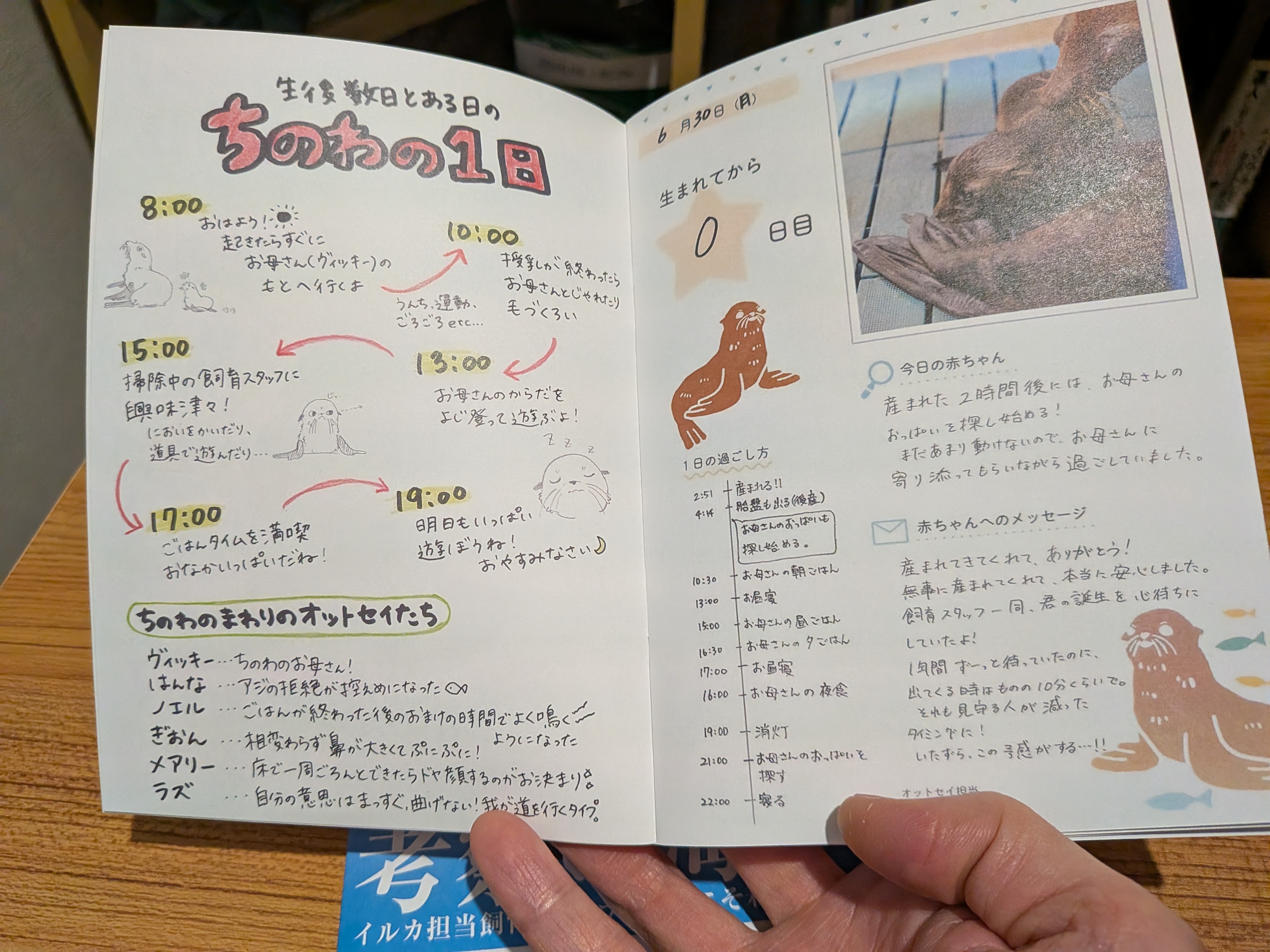 2025年6月30日に生まれた赤ちゃんオットセイ「ちのわ」。生誕1日目からの成長記録が絵日記風で描かれています。写真も可愛いですし、絵もとても上手いです。