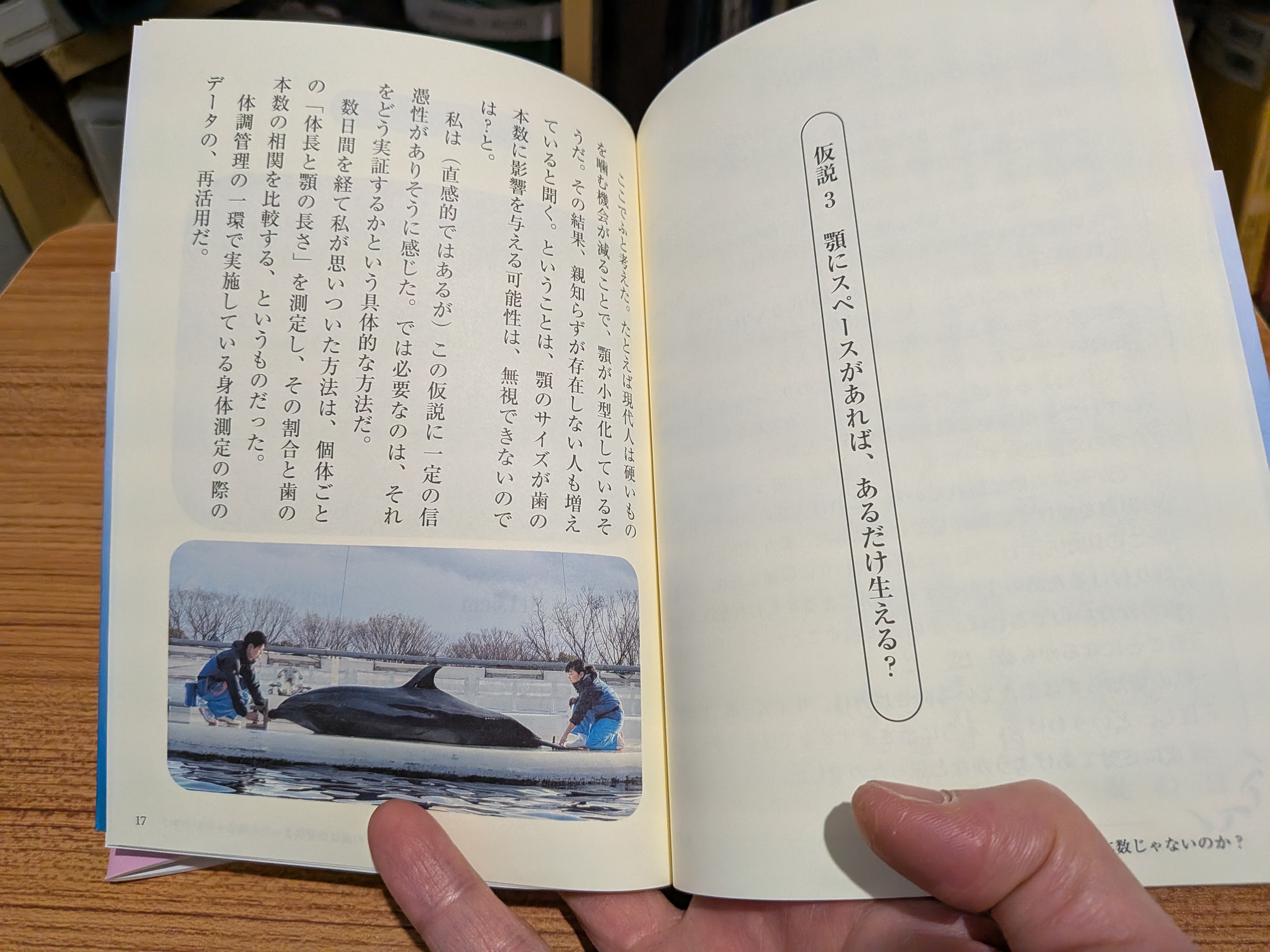 本書では3つの仮説を立てて、なぜ歯は決まった本数ではないのかについて考察されています。中盤ではイルカの歯の写真やレントゲン写真もあり、ちょっとショッキングかもしれません。